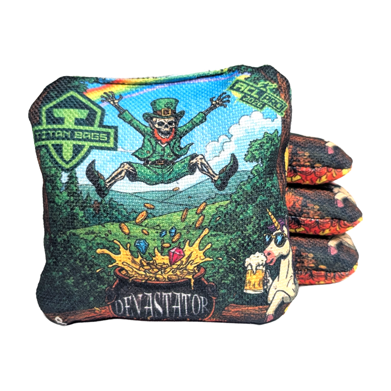 Get weird. Get lucky. The Pot o' Gold Titan Bag Design brings wild St. Patrick’s Day energy to the boards with a fearless design featuring a leprechaun guarding his pot of gold and a unicorn cracking a cold one. This limited-release drop blends holiday humor with the elite performance Titan players trust.